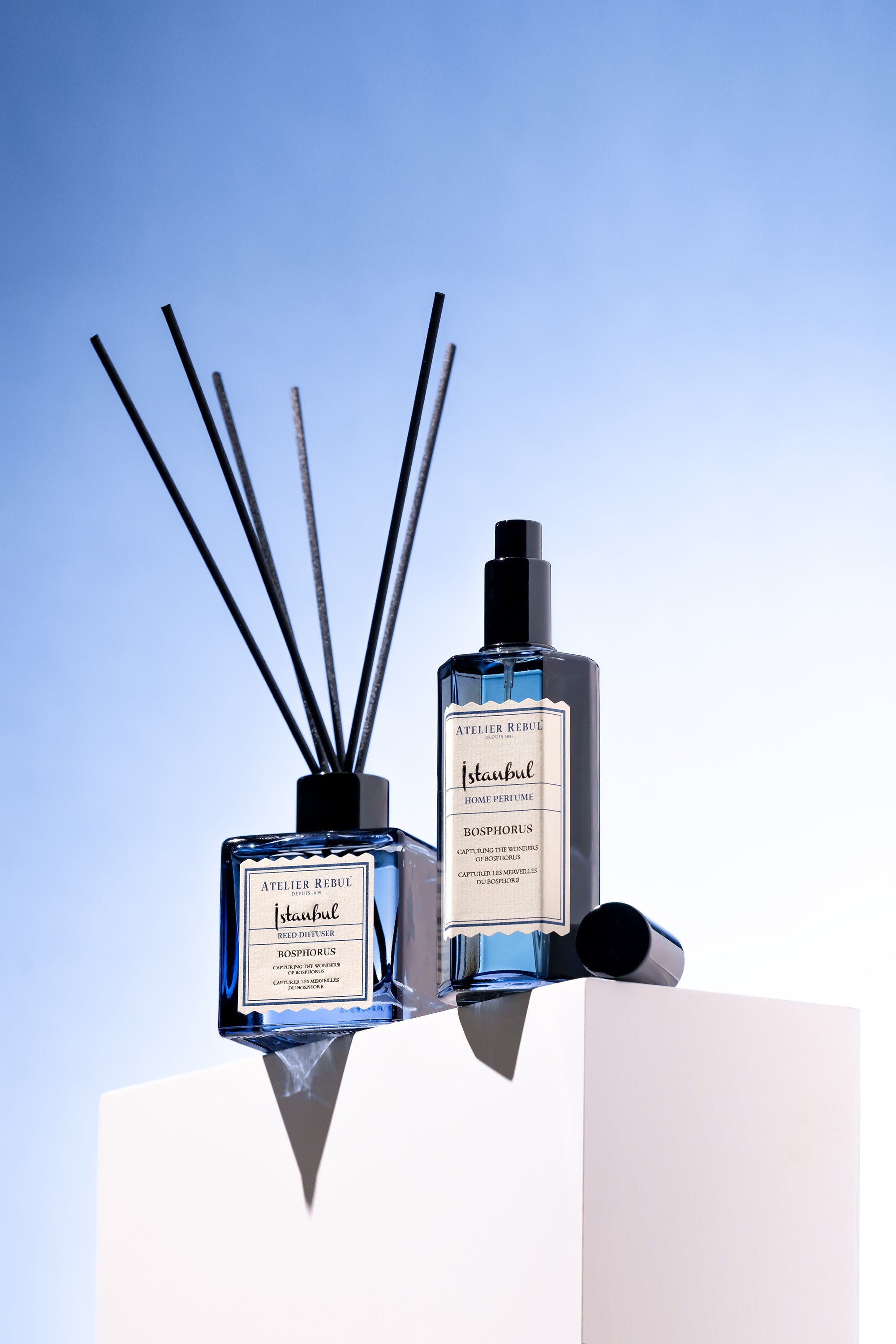 Deze verfijnde samenstelling van zeezout, Turkse roos en blauwe dennen vangt de ziel van de beroemde waterweg van Istanbul. Vervaardigd met premium ingrediënten, zorgt het voor een langdurige geurervaring. Het elegante design voegt ook een extra stijlvol element toe aan iedere kamer. Laat de betoverende "İstanbul Bosphorus" u meenemen op een geuravontuur, die uw dagelijks leven verrijkt met een mix van elegantie en geur.