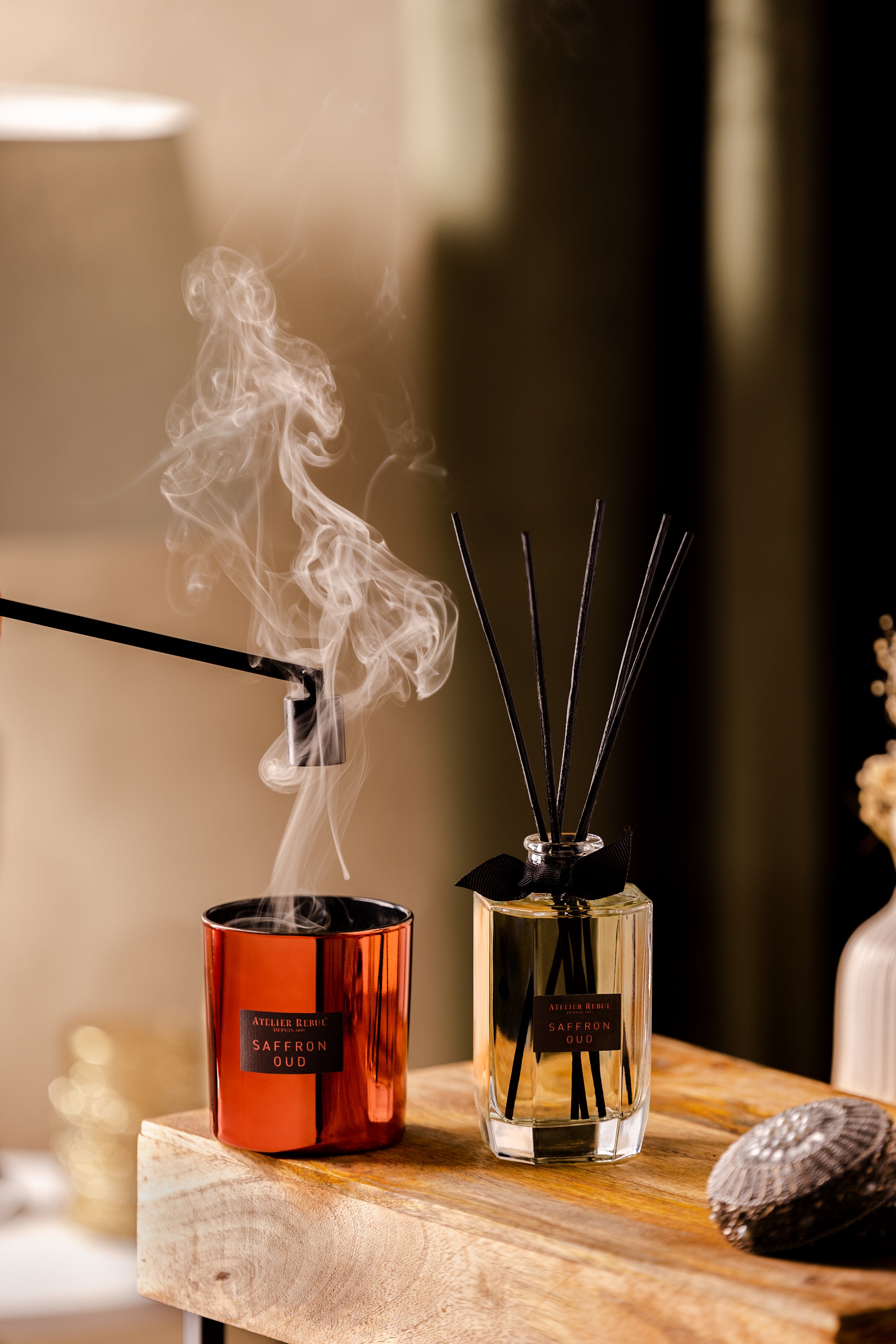 The scent of Saffron Oud takes you on a flavor journey of spices with notes of sandalwood and precious saffron. When you light the scented candle, it will quickly spread its aroma in the surrounding environment and change the atmosphere in your home. Moreover, this scented candle is enriched with high-quality vegetable wax.